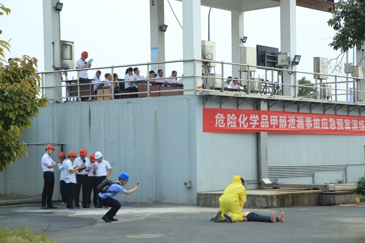 本次演練分為生產車間藥劑池清理作業事故應急預案演練、危險化學品甲醇泄漏事故應急救援演練、工業廢水超量應急預案演練和轉輸口水質超標應急管控演練等四個科目,分別模擬藥池清堵作業人員中毒、甲醇運輸車藥劑泄漏、工業廢水突增超量和轉輸口水質超標事件。演練按照預案開展應急救援和調度處置操作,最終圓滿完成各項任務,達到了預期效果。