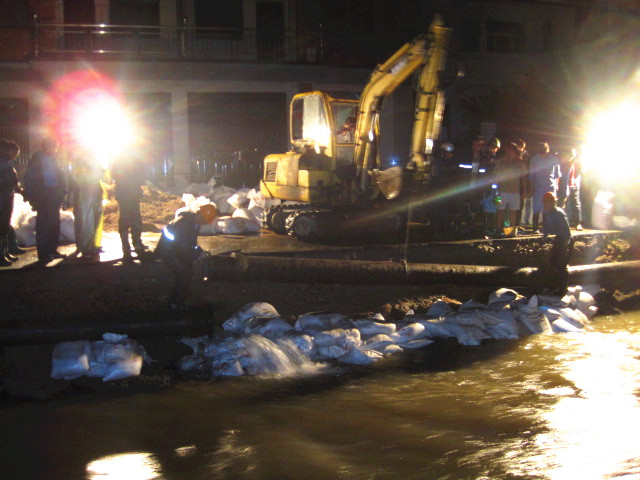 災情就是命令!集團接到縣防指命令后,立即啟動大口徑管道應急搶修預案。根據受災情況,集團迅速派出由20多名人員組成的專業搶修隊伍,隨帶各種專業搶修工具,冒著大雨趕赴受災點,并于下午16時進入現場開始搶修。經過8個小時的持續作戰,搶修隊克服重重困難,終于搶通供水管道。然而,凌晨3點多,敖紅了雙眼的搶修人員卻再次接到任務,立即趕赴王壇鎮幫助王壇鎮水廠解決因停電造成管網無法輸水的問題,于凌晨5點恢復供水。