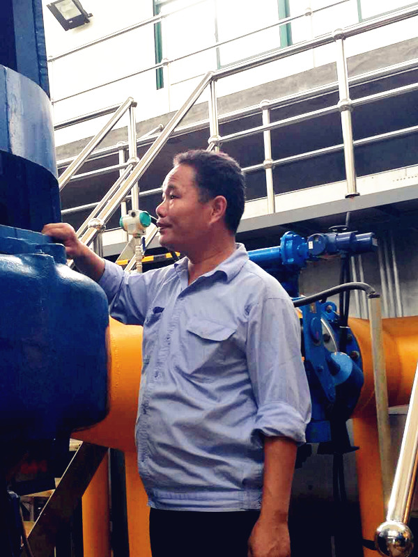 從 2001 年至今,張立平一直從事設備維修管理工作。剛參加工作時,張立平也曾對許多故障束手無策。對此,他一方面在網上查閱資料,另一方面虛心向廠家和同事請教,仔細拆卸每一個故障設備的部件,細致琢磨每個零件的功能原理,經過幾年的努力,逐漸成為了設備保障的行家里手。2013年,在設備廠家撤退、無現成備件、無直接可借鑒的技術的情況下,張立平組織維修力量,對新區離心機進行專題研究,并先后開展了離心機下水管優化改造、油泵改造、設置離心機沖洗管等創新舉措,不僅解決了原來離心機處理量小、含水率高的基本性難題,而且緩解了漏油故障和氣泡問題,確保了污泥處理系統的全運行。圍繞保障運行,張立平提出了以養代修、以改促修的維修理念,他帶領團隊先后完成了鼓風機循環水泵自動控制方案、排氣閥門優化改造方案等10 余項創新型改造方案,通過實施優化改造,使設備經常性故障得以逐步消除,為水處理系統的正常運行提供了有力保障。
