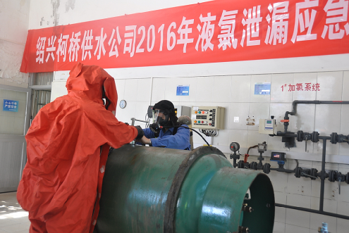 為切實增強對危化品使用的安全意識和應急處置能力,6月30日上午,公司在柯橋泵站加氯間舉行了2016年液氯泄漏應急演練,共有13名泵站人員參與本次演練。